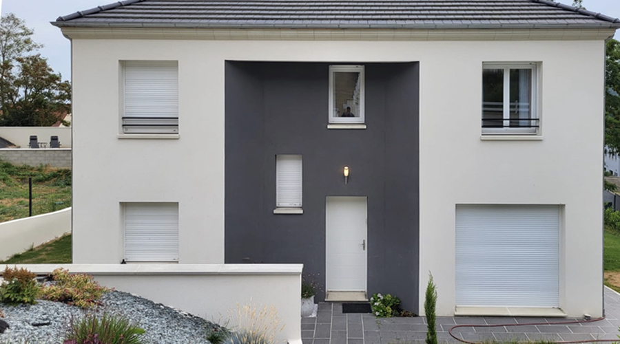 Les menuiseries sont en PVC de couleur blanche. La toiture est réalisée en tuiles béton double romane. Plusieurs couleurs d’enduit extérieur sont proposées.