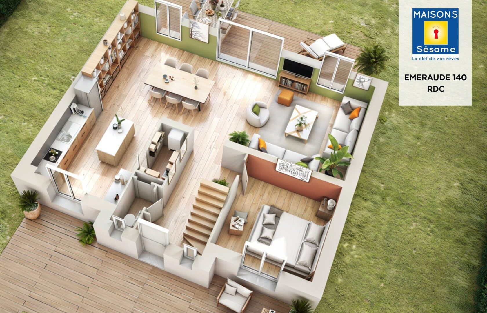 Le modèle EMERAUDE 140 est une maison familiale d’une superficie de 140 m², elle dispose de 4 chambres et est conçue pour optimiser les espaces tout en offrant une ambiance chaleureuse et accueillante.