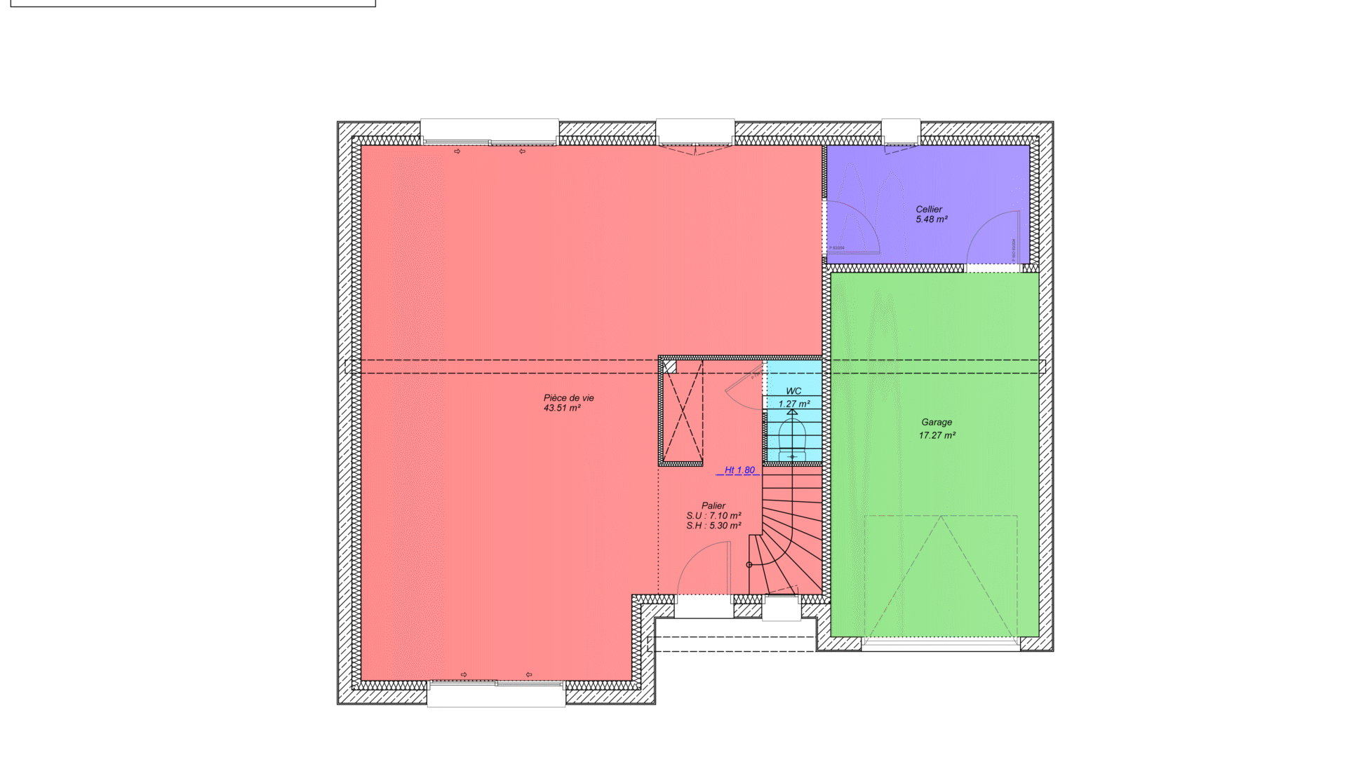 Maison de 125 m² avec un garage intégré de 17 m², à l’étage, jusqu’à 5 chambres et 1 salle de bains.